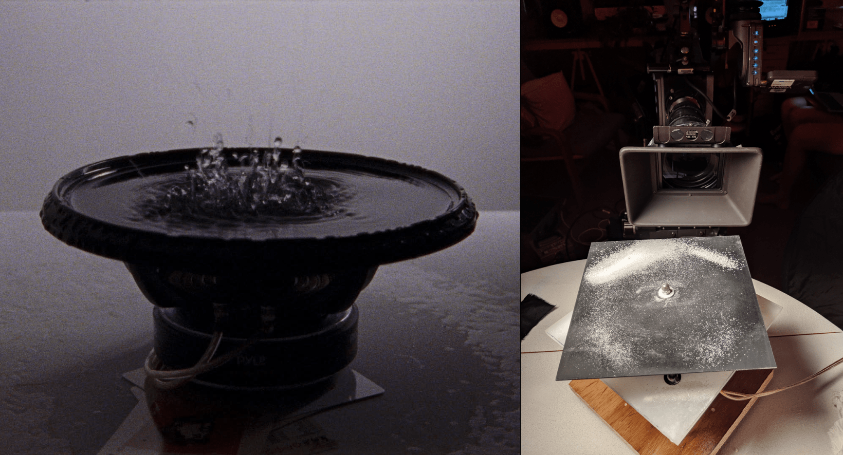 I love the close ups of the materials vibrating on speakers - it reminds me of the work of Zach Walker. Did you shoot this stuff yourself? Can you tell us a bit about it?