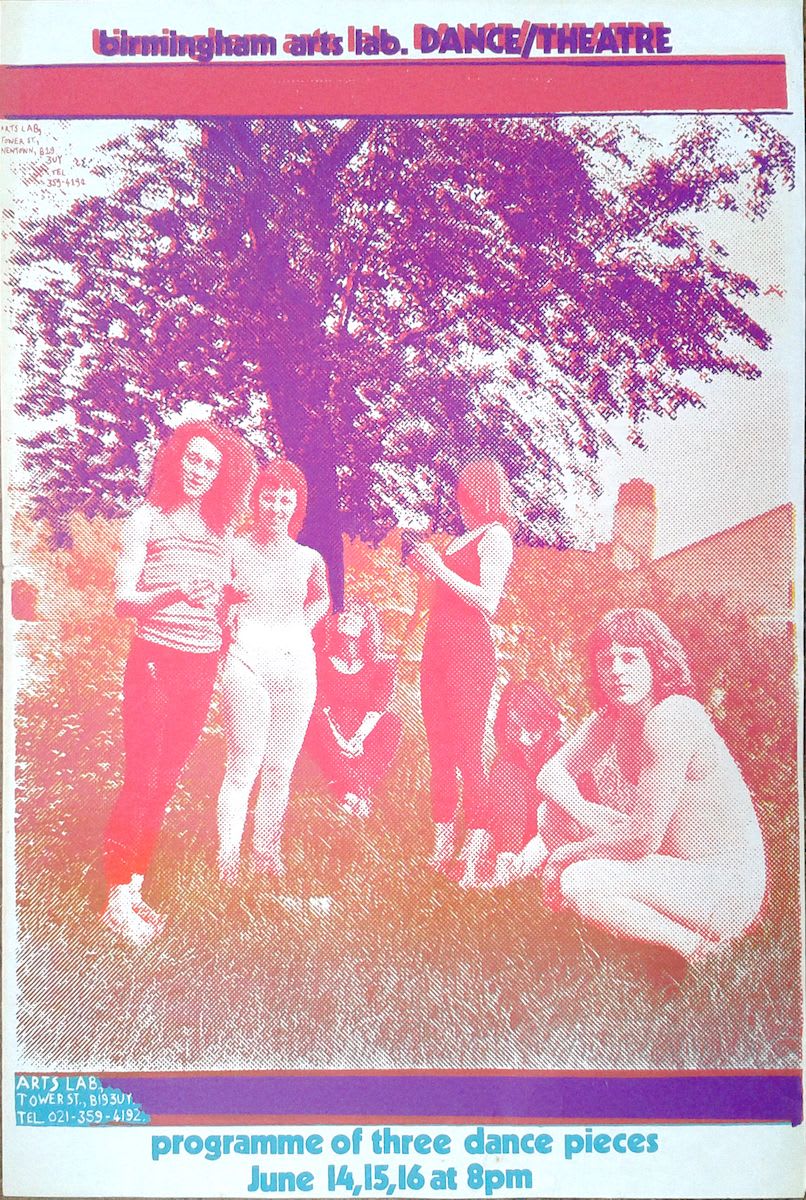 BL: It's more Ken than me. We often used to work very closely together on the same job. This one - there was a big advertising campaign at the time for Ansells beer, and the slogan was Ansells bitter men. I think it was Ken who thought it would be a good idea to do an Arts Lab men equivalent poster. So this is what he came up with. But when I when I saw it again a few days back, it made me think about the gender balance in the organisation. There were a few women involved, but mainly it was a boys club. Although there were there were lots of people of all sexes that came with various theatre companies and dance groups. One thing that really struck me looking back at that was how active it was. There was always lots going on, and new people coming in who would be doing some wacky kind of performance somewhere. So the boys club core was kind of diluted by people, sometimes women, coming in from the outside.
