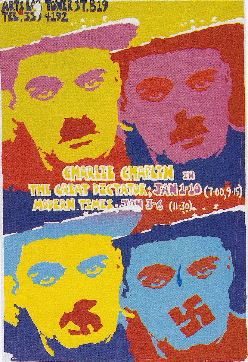 BL: One of the main things about the Arts Lab was the amazing film programme run by Tony Jones and Pete Walsh. It was said at the time to be the best arts film programming outside London. It was probably better than most of them in London. But a lot of the posters that we did were to advertise films that were going to be showing at the Arts Lab cinema, and yeah, there was a living of sorts. We managed to kind of crash out in various parts of the building at times, so we didn't have to pay rent, and they let us have a studio. The deal was that we produced the posters and got paid a little bit for doing so. I can remember the figure of eight pounds being what we were paid for 50 three- or four-colour posters, which doesn't sound very much but at that time it enabled me to go up to Liverpool, see my girlfriend, pay for train fare, and then I'd come back and do the next poster and repeat the process.