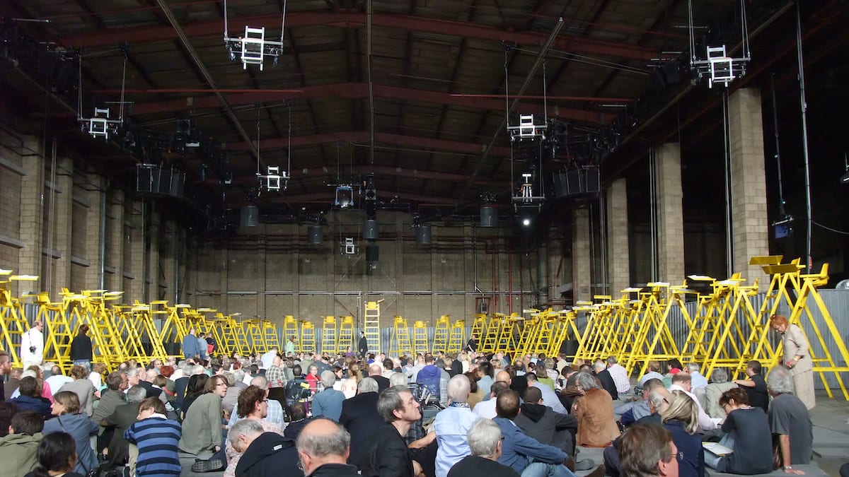Flatpack no.3 featured one of our finest festival hubs, a warehouse on Floodgate St which we transformed with the help of some theatre design students from BCU. For many years the festival hub wandered the streets of Digbeth, setting up home in an array of nightclubs, galleries, dance studios and archway units. (On reflection, we don’t recommend hosting your festival hub in a nightclub.) This has always been one of the joys of the area – the availability of relatively cheap, blank space to support the vision of versatile arts organisations like Fierce, Stan’s Cafe, Punch and Birmingham Opera Company. The latter were responsible for one of the most memorable cultural happenings to grace the neighbourhood when in 2012 they staged Stockhausen’s Mittwoch Aus Licht in a huge industrial unit, complete with camels and helicopters.