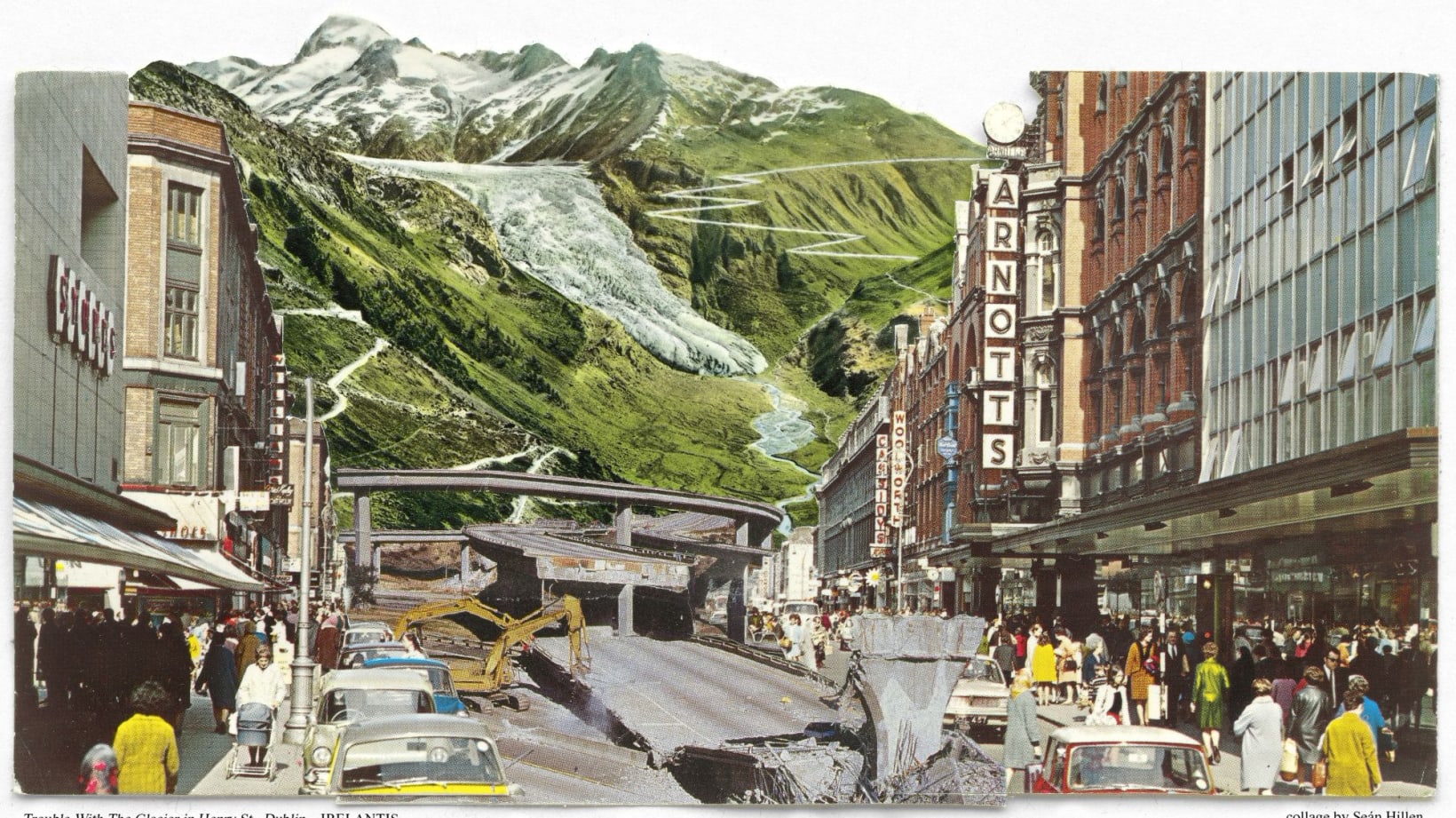 The collision and juxtaposition of imagery has always fascinated us here at Flatpack - we've shown films by collage animators like Martha Colburn and Run Wrake, have put on various exhibitions, and we even threw a collage-themed party in 2015. So when we first saw Gillian Marsh's brilliant documentary about collage artist and photographer Seán Hillen, it was hardly a surprise that we wanted to show it. You can find out a little more about the film in Kolaj Magazine and it's available to watch as of today (Thursday 27 May) for 72 hours on our virtual platform (includes a Q&A with Seán hosted by collage artist Mark Murphy). To whet your appetites, I thought I'd pick out 10 of Seán's collages from his vast collection of artworks. In no particular order - I just think they're all great.